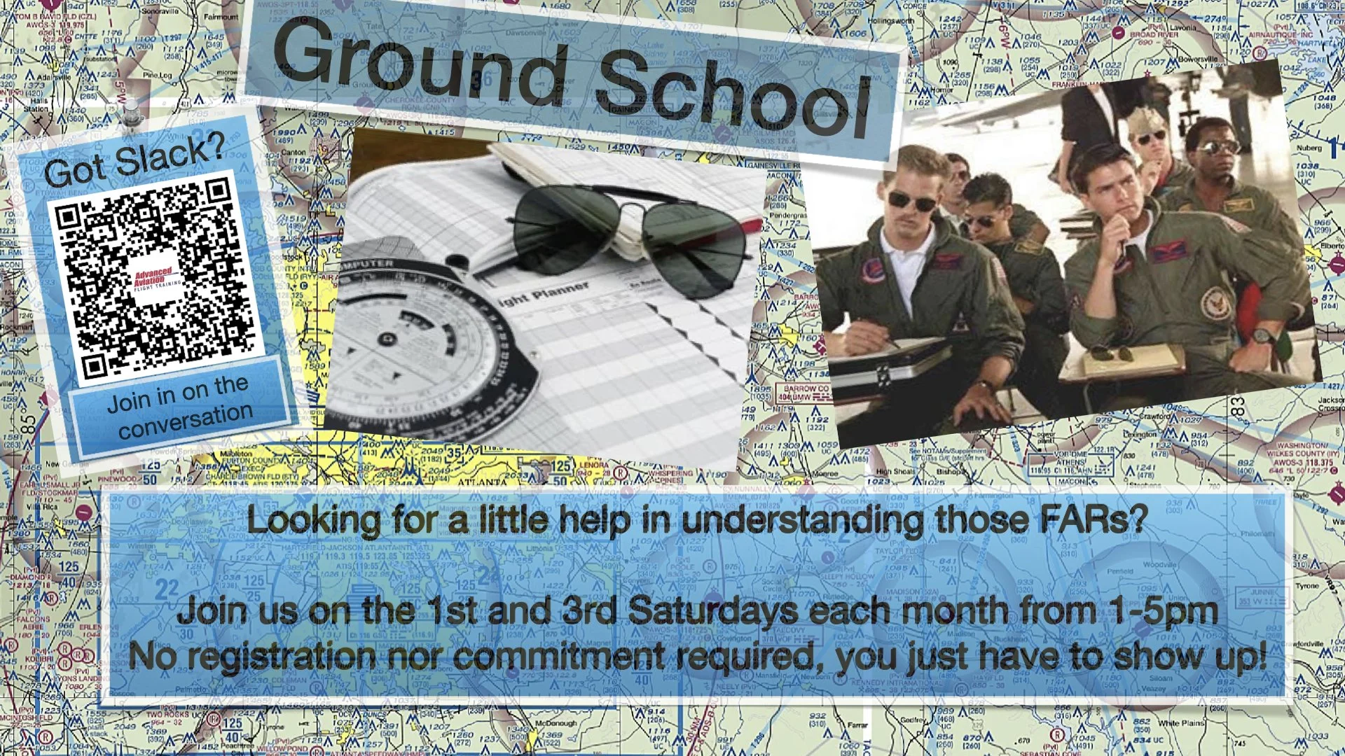 Join us on the first and third Saturday of the month for a Ground School Session. Topics very session to session, but our Ground Instructor Brian is more than happy to answer any questions you may have as you work through your Online Ground School training. No registration, nor commitment required.